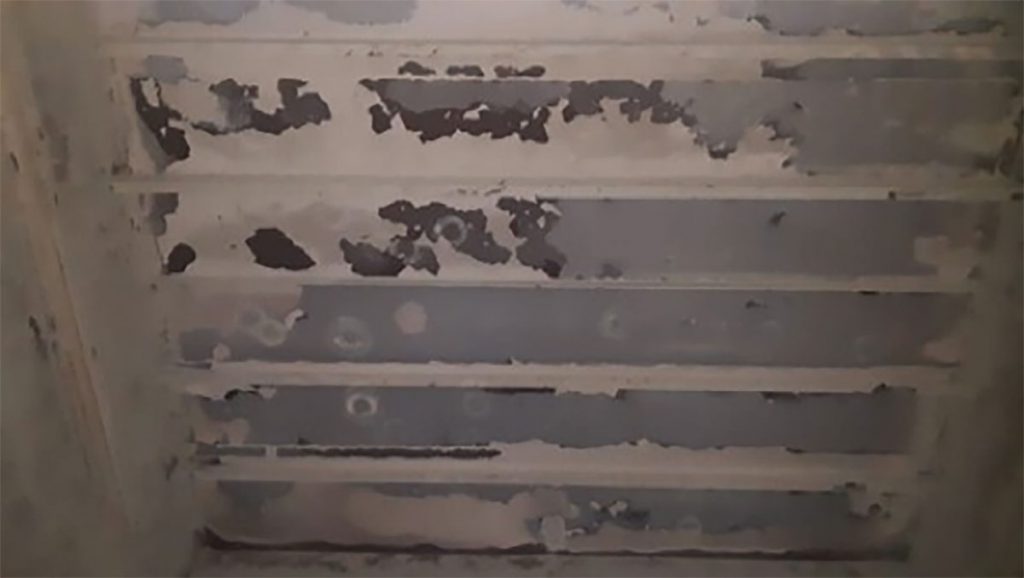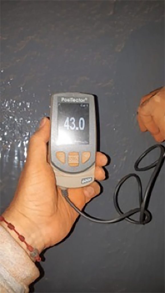 Dura-Coat 200HT was applied in this project due to its high resistant to chemicals (In this case sulfuric acid) and its high temperature resistance. Previously no coating was applied and the corrosion caused can be seen in picture #2. As seen in picture #3 Dura-Coat was quickly applied and reached a thickness of 43 mils with a single coat.